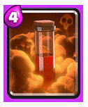 使用玩法:毒药法术是一张非常具有代表性的中费法术卡牌,特别是在2v2中其使用率极高,A5的赛场中用于辅攻或者防守的表现都很不错。这个单位最大的亮点在于持续的范围溅射伤害,我们在进攻时,如果对手使用多个单位防守,那么毒药可以起到极强的消耗和解卡赚费效果,2v2中性价比很高。防守方面,当敌军打出强力的组合进攻时,对于后排辅助的多个粉丝和中血量单位也是能够有效克制,进行解除。