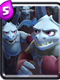 俗称六个核桃,外形就像六只烦人的苍蝇,虽然弱点很多,但能克制的兵种更多是这张卡牌的优势所在,常见的地面推塔兵种如王子、野猪和巨人,在亡灵大军面前都抗不了几秒,最重要的是可以解决烦人的气球,和飞龙宝宝单挑有来有回,在没有其他兵种干扰的情况下,也能磨掉不少塔的血量。