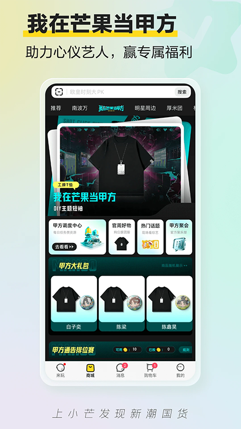 1、【明星周边尽在掌握】 在小芒,明星同款一键直达!汇聚100+顶流偶像与实力派演员潮流臻品,更有时代峰峻官方店倾情入驻!从人气偶像专辑杂志到巡演及限定周边,小芒凭借独家资源库与品质保障,打造「高情绪价值」明星周边系列,还原偶像魅力,满足粉丝的多元化需求,全方位承包你的追星盛宴! 2、【新潮好物逛不停】 小芒 App 是芒果超媒旗下超酷炫的新潮内容电商平台,有让你心心念念、梦寐以求的奇妙好物,还有那些意想不到的惊喜等着你!体验年轻人热爱的圈层文化,学长学姐最in同款一键get!服饰、模玩、卡牌、二次元、潮玩、棉娃、美妆、EDC……只有你想不到,没有小芒找不到,总有一款让你心动,快来开启你的寻宝之旅吧! 3、【芒综同款追不停】 上小芒,吹响芒果TV综艺粉丝集结号!小芒 APP 带你发现《歌手2025》《我在芒果当甲方》《密室大逃脱7》《友有游几天夏日限定》《你好,星期六》《乘风2025》等超多综艺官方周边!还有超火节目同款商品,等你来解锁! 4、【直播福利享不尽】 快来小芒直播间!青春颜值主播软件特色