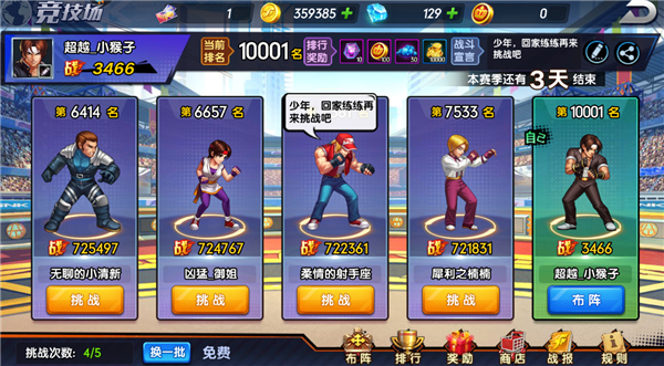 1、欢迎来到拳皇全明星竞技场,在这里,每7天一个赛季,尽情的战斗吧