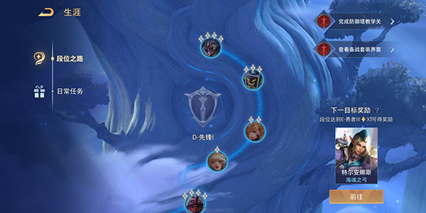 每次突破大段位都可以获得皮肤奖励,如特尔安娜斯:海魂之弓;刀锋宝贝:星际武士等。