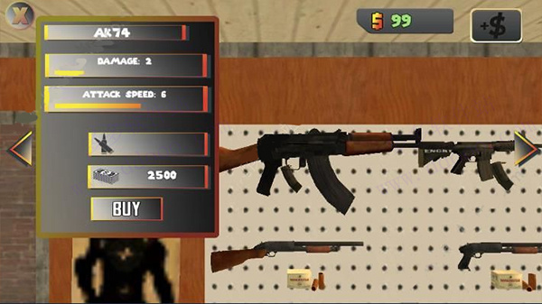 6、每种武器我们可以看到名称、伤害、攻击速度,子弹,价格,比如说AK74需要2500美金;