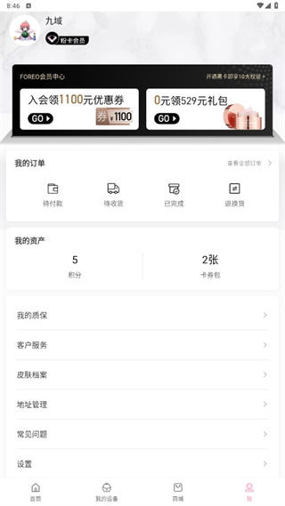 1、设备智能操控 通过蓝牙与FOREO UFO或FOREO UFO mini智能连接,轻松遥控设备。 2、美肤视频秘籍 每款面膜都拥有独特的专属护肤图文教程,让每一滴面膜精华都能完美作用于您的肌肤,不出家门就能享受到专业面部护理。 3、注册验证正品 FOREO应用能够进行FOREO UFO或FOREO UFO mini设备注册,注册成功立享2年免费质保及10年品质保证。扫描面膜更能验证面膜真伪。 4、魅力兑换臻礼 累积积分,一键兑换甄选好礼。 5、面膜模式 搭配UFO面膜90s长效守护肌肤,肌肤含水量提升126%,坚持使用皱纹减少23.7%。FOREO APP如何使用积分兑换礼品