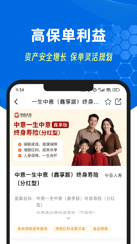 1、精选市场优质好保险 60+家保险公司,1000+款产品,10多种细分场景保险,想要什么这儿都有。 2、保险专家一对一咨询 告别时间与空间的束缚,一对一专业顾问7*24小时在线,为您解答保险疑难,提供专业意见。 3、保障方案量身定制 资深保险顾问根据个人及家庭切实的保障需求,为用户合理搭配重疾险、医疗险、寿险、意外险等多重保障。 4、一键理赔很省心 当发生保险事故时,为用户提供7×24小时协赔服务,由专业协赔专员全程跟进、指导,直至案件完成。更新日志