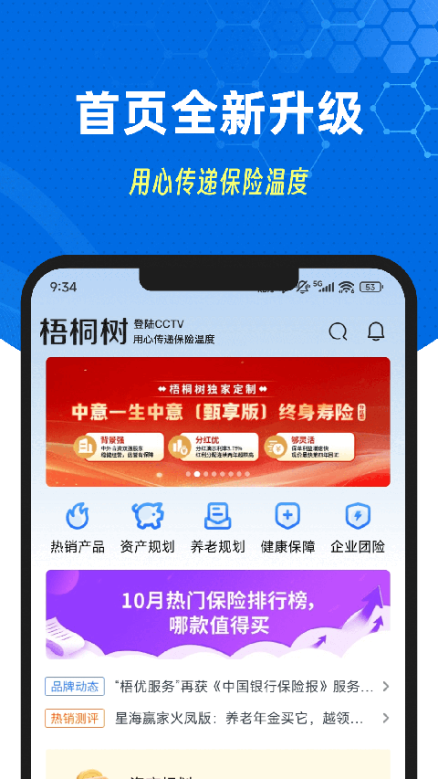 1、在本站下载安装并打开梧桐树app,登陆后进入软件首页,用户可以看到各种相关的保险产品。
