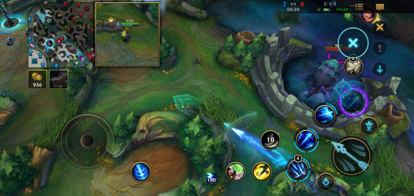 而对于熟悉英雄联盟的玩家,最在乎的想必是你最爱的英雄是否能打出同样的操作了。 在这游戏将不少英雄的指定技能施放做了更动,像是剑圣的Q技能、薇恩的推人钉墙或是亚索的滑来滑去,都变成用点选技能后采用拖曳的方式来选取敌人,接着放开后即可释放。 不少技能甚至还会帮你画出参考线,让你更准确的预判好施放之后的方向。 如此的设计保证让你能在手机上同样打出行云流水的操作。