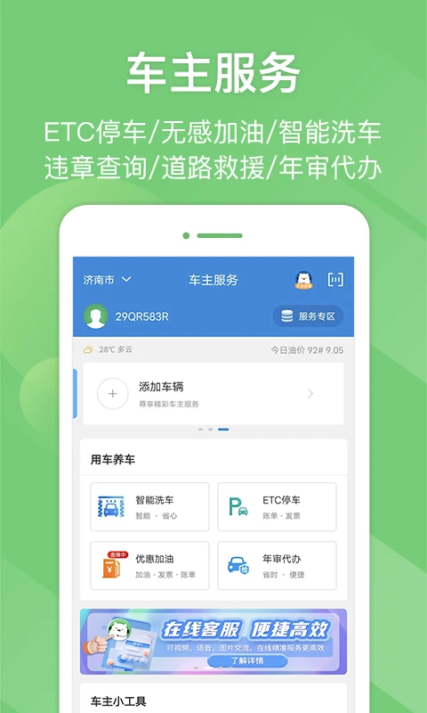 【全能ETC管家】 -ETC便捷申办:全国ETC在线/电话办理(个人、企业),破除公户限制,支持山东省上门安装。 -原厂车载ETC:大众、奥迪、特斯拉、理想、陕汽等数十品牌,提车前即可安装好。 -租车专属:扫码即办,随租随用。 -贴心售后:安装激活、账单查询、开票、充值、异常检测、信息变更、停用启用、挂失解挂、网点查询、在线客服… 所有ETC问题,这里都能解决! 【智慧出行生活】 -权威路况:实时同步山东高速监控中心,掌握精准高速信息。 -无感支付先锋:ETC无感加油:下车?扫码?不用! 自动支付,加完即走。ETC智慧停车:停车场入出快人一步,账单管理更清晰。 -服务区导航:一键查找附近服务区,加油站、充电桩、维修等信息一目了然。 -e快洗洗车: 智能洗车或门店洗车,便捷使用。 -超值ETC会员:通行返利:通行费越高,返利越多(金币抵现)! 保障服务:提供高速救援、赠百万出行意外险,安心出行。软件功能