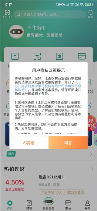 3、可以查看我的财富和近期理财产品,为您提供特色产品服务:基金、理财、步步唯赢、江南盈、智能转存等服务。