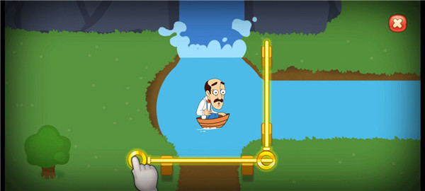 6、玩家需要巧妙移动关卡堵住污水和砸死鲨鱼最终走到终点
