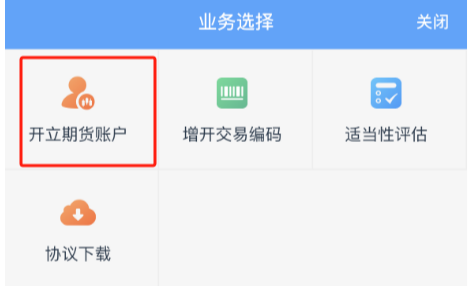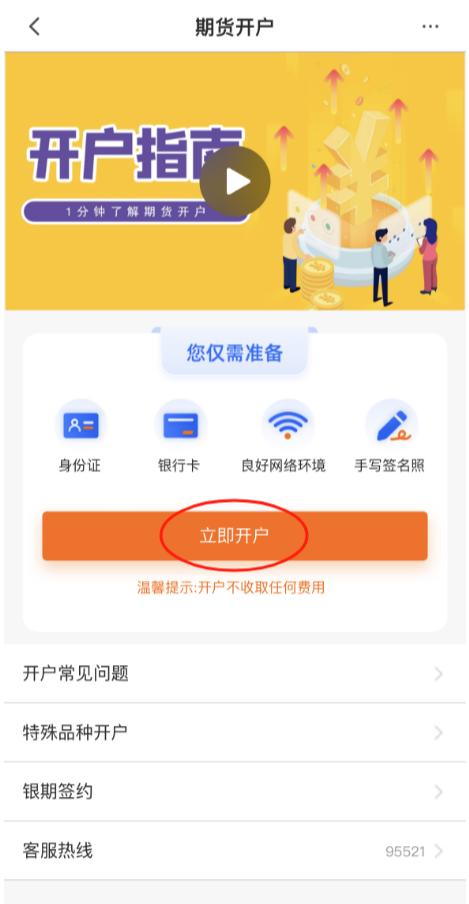 2、点击【立即开户】,选择【开立期货账户】。