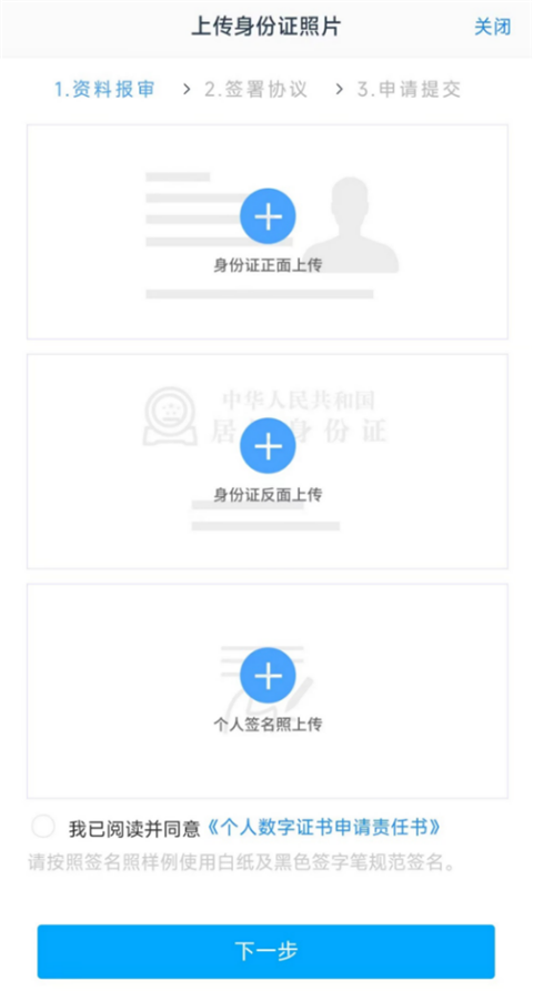 4、上传身份证原件以及手写签名。