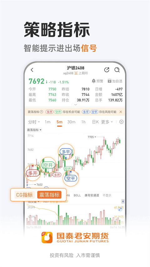 1、国君研究 顶尖投研团队为您提供及时专业的投研报告,覆盖全行业全品种,还有丰富的直播和活动,与分析师大佬面对面互动交流。 2、市场数据 每日期货品种涨跌幅、各品种资金流向、季节性对比、基差价差图表、各经纪商持仓龙虎榜等海量数据等您来发掘。 3、期货行情 国内所有交易所的期货、期权、指数等实时行情;国际各大交易所行情数据;支持自选行情、多类指标图、分类查询等便捷功能。 4、期货交易 与国内所有交易所光速互联,拥有智能条件单、画线下单、闪电下单等特色。 5、业务办理 从极速开户到银期绑定,从修改密码到账户激活,从特殊品种权限申请到仿真开户,一站式流程让您足不出户,享受服务。 6、行业动态 7×24小时实时新闻让您随时掌握国内外市场动态;汇集交易所、专业媒体、综合媒体等各渠道的海量资讯让您全面了解行业发展。 7、国泰君安期货 为投资者提供原油、贵金属、有色金属、能源化工、农产品、期权、股指期货、黄金、白银,生猪期货,花生期货,沥青、乙醇、钢坯等大宗商品投资交易,是一款安全可靠专业的期货软件。国泰君安期货app如何开户