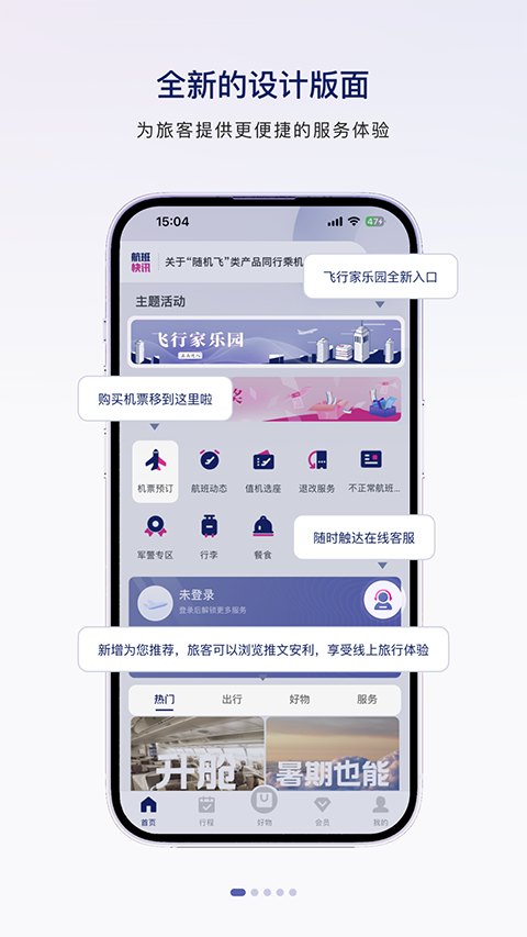 1、提供国内和国际两种机票查询,选择起始地和日期即可快速查询; 2、为用户推荐各种特价机票,让用户花最少的钱就可以前往各种地方; 3、支持航班动态查询,用户可以在这里查询到各个航班的动态信息,及时了解; 4、提供行李额购买,你可以在线购买托运行李额,方便快捷; 5、用户可以购买餐食,快捷购买各种餐食,方便在飞机上进餐; 6、为用户提供保险购买版块,用户可以在线购买各种保险,安全出行。网上购票须知