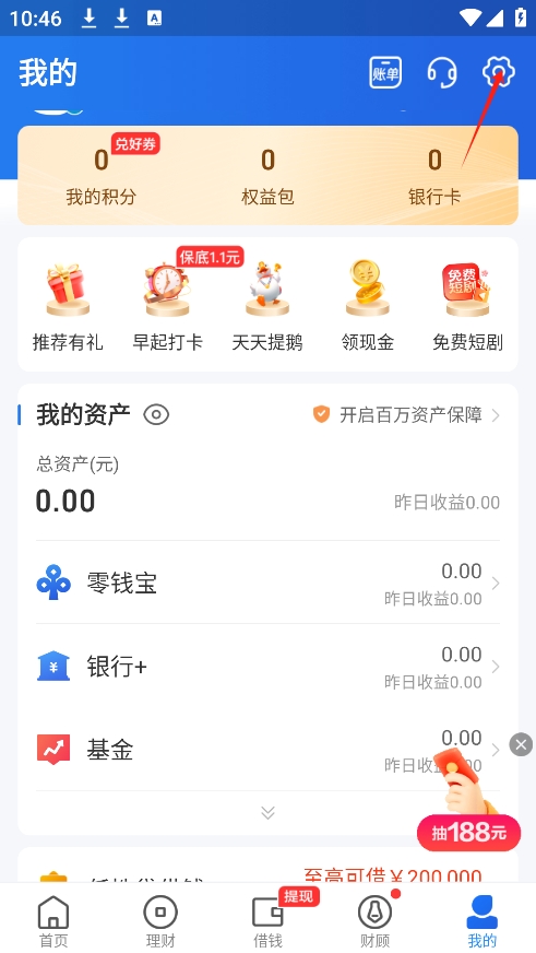 1、打开星图金融的我的页面,点击右上角齿轮图标。