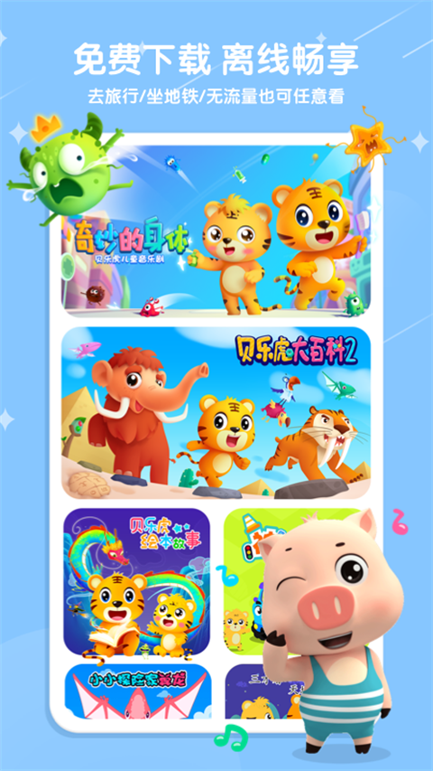 1、精选儿歌、故事、古诗等内容制作成高清视频动画。 2、精心打造儿童专属画风和场景的原创儿歌。 3、简洁易用的操作界面,孩子很容易上手使用,解放家长时间。 4、高清视频免费下载、离线缓存,想看就看。更多儿歌每周持续更新。软件功能