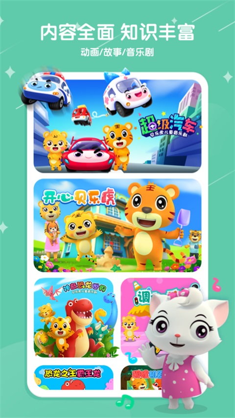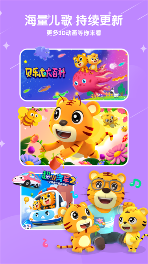 1、儿歌:亲子家庭类《爸爸去哪儿》《我的好妈妈》《家庭称呼歌》等;律动儿歌类《小苹果》《幸福拍手歌》等;故事教育类《聪明的一休》《三个和尚》等。 2、故事:幼儿园优秀故事《小猫钓鱼》《乌鸦与狐狸》《守株待兔》《小蝌蚪找妈妈》《小马过河》等。 3、古诗:经典唐诗名句的全新演绎方式,贝乐虎植入式场景为宝宝带来不一样的古诗体验。贝乐虎儿歌app怎么搜索歌曲