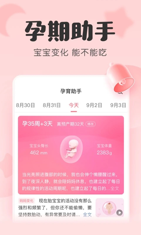1、备孕攻略,受孕几率轻松算 科学的排卵算法,更快命中,助你一臂之力。 2、辣妈驾到,萌宝成长柚宝帮 宝妈的新手上路手册,了解宝宝发育和每天注意。 3、每日观测,宝宝动态随时看 3D可视、模拟B超图像,掌握宝宝成长每一刻。 4、宝妈学堂,孕期疑难快速解 和妈妈们交流宝宝的一切,不怕知识晦涩难学。功能介绍