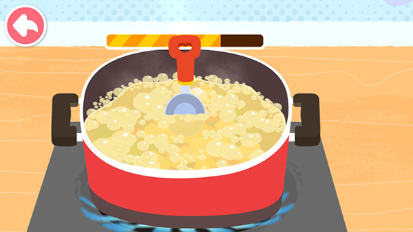 之后就是最重要的搅拌环节啦!让宝宝按住锅勺进行搅拌,等待上方进度条满了就完成啦!