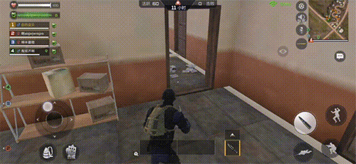 当团队战选择主动进攻的时候,我们就需要注意地图中的每个点位,每移动一步都需要搜点。因为一味的往前冲很容漏掉蹲点的敌人。如图,选择从左侧进攻时,先要注意一层的敌人,因为大多数敌人都会选择短平快的通道。之后就需要小心二层通道了,一般打此位置可以在转角位置提前拉枪扫出去。然后看队友状况,如果右侧的队友打的吃力就可以在中房转点支援右侧队友。