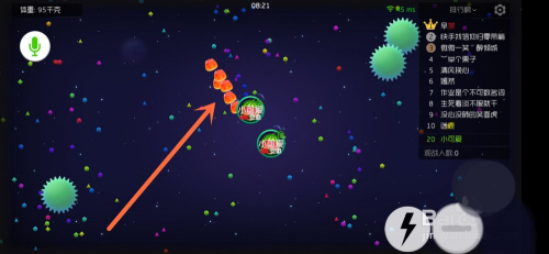 1、进入游戏后快速吃发育成大球状态,之后分成两小球。