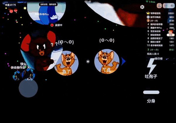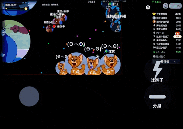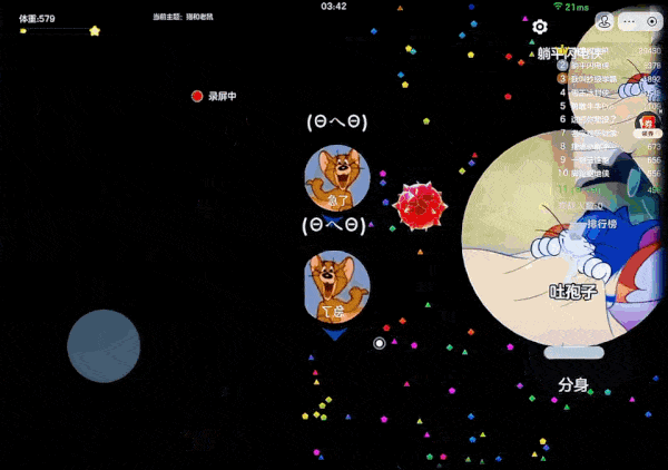 接下来就到主动出击的时候了,局势已经在咱们掌控之中。这时候只要看到比自己小的球,直接吃掉就行。同时盯着中间那个最大的球,等它露出破绽,咱们就能抓住机会反杀一波!