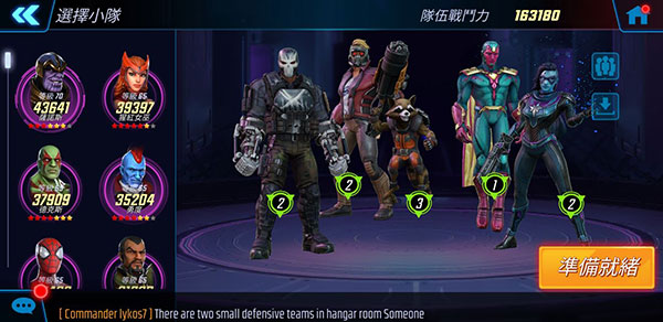 这队没拆buff续航力又不佳,第一波攻势没打出优势还挺容易被磨死的……战力没撑高不好用。不过单独拆出两三人使用还不错,星爵/浣熊能沿用到科技队。