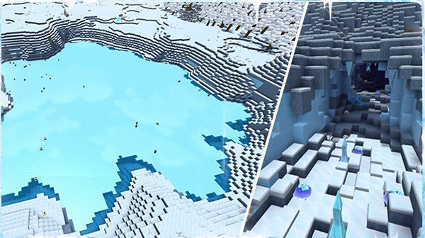 有雪原、雪山、冰湖、冻洋、覆雪针叶林、洞窟六种地形。