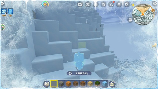 使用聚物手套,点击方块上的积雪即可生成雪球,进入推雪球状态,雪球还会越滚越大,对着雪球蓄力,可将雪球推至远处。推雪球状态下,将相邻两格的雪球堆叠成雪人,再用收集到的细树枝、棉花、枯灌木丛、松果、树叶装扮雪人,完成后就用冰灵精粹可以激活它。