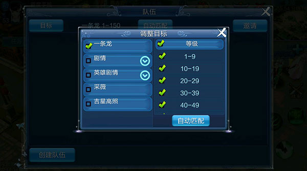 1、在任务按钮旁是“队伍”按钮,可以查看当前的组队状态。点击队伍按钮,可以开启组队面板。 2、想邀请小伙伴一起闯荡三界?在游戏中直接点击小伙伴的角色,再点击一下对方的头像,即可邀请他/她一起组队。 3、想组队做任务却没有认识的小伙伴?游戏中有强大的自动匹配功能,打开组队面板,在“目标”选择要参加的活动,就能一键组队!