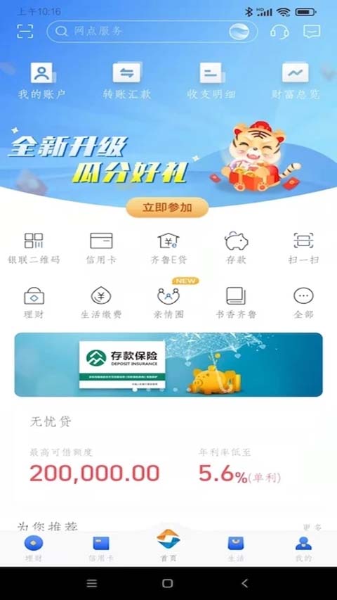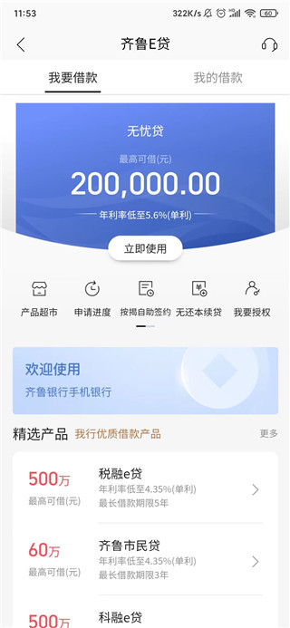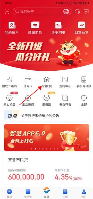 1、大家安装之后在首页点击“齐鲁E贷”;