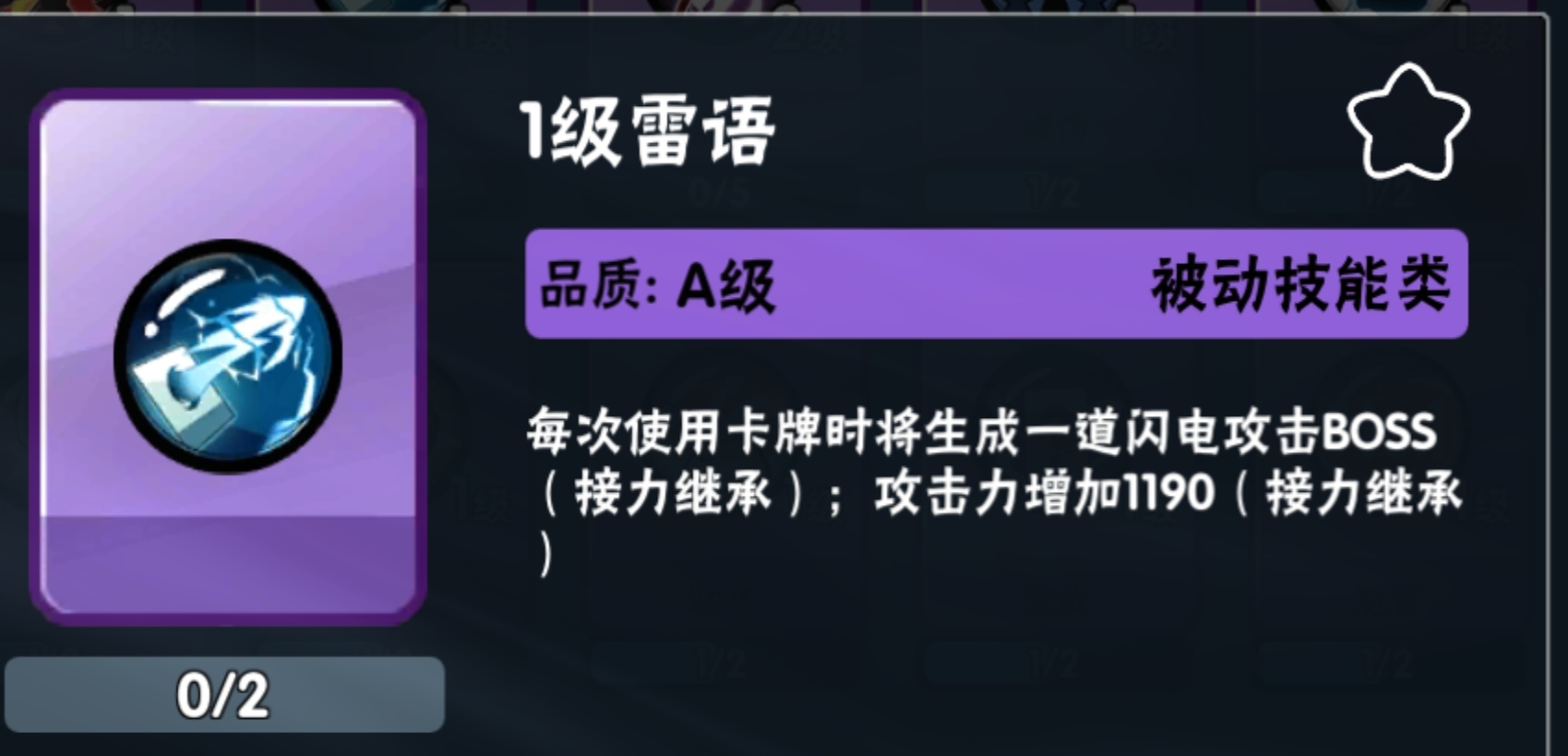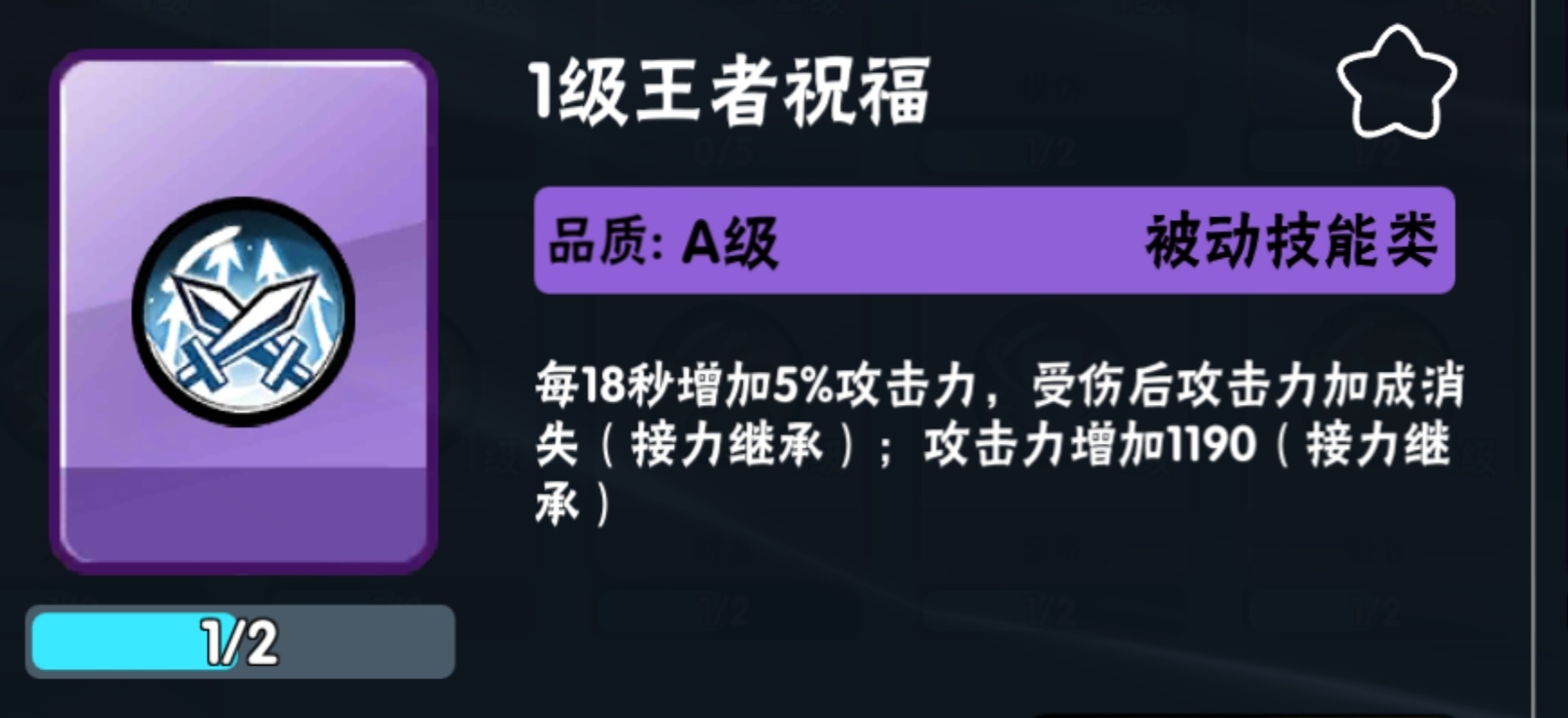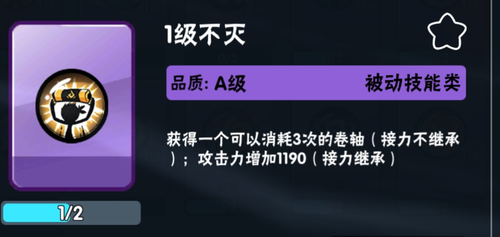 被动都是紫色品质就不说了,效果是每18秒增加5%的攻击力,受伤后清空之前的加成并重新累积,装备被动时将增加1190点攻击力,接力继承 王者祝福这张牌的话全图通用,但是你得对你的跑图很好,即死图推荐带上,但是跑图一定要好,否则可能会出现你跑到一半就死的情况,这张牌整体效果还是很不错的,5%的攻击力可以持续叠加,4000点攻击力为例,那美18秒的5%可以叠加200攻击力,而且可持续叠加,相比于一般被动还是挺不错 普通地图推荐携带指数:6 即死图推荐携带指数:5 PS:即使图推荐携带指数比较低,是因为如果跑图不太熟悉那么真的不推荐携带,正常的话,有更多选择,但是对于大佬来说,还是可以带的,所以推荐数值都不算很高 17、不灭