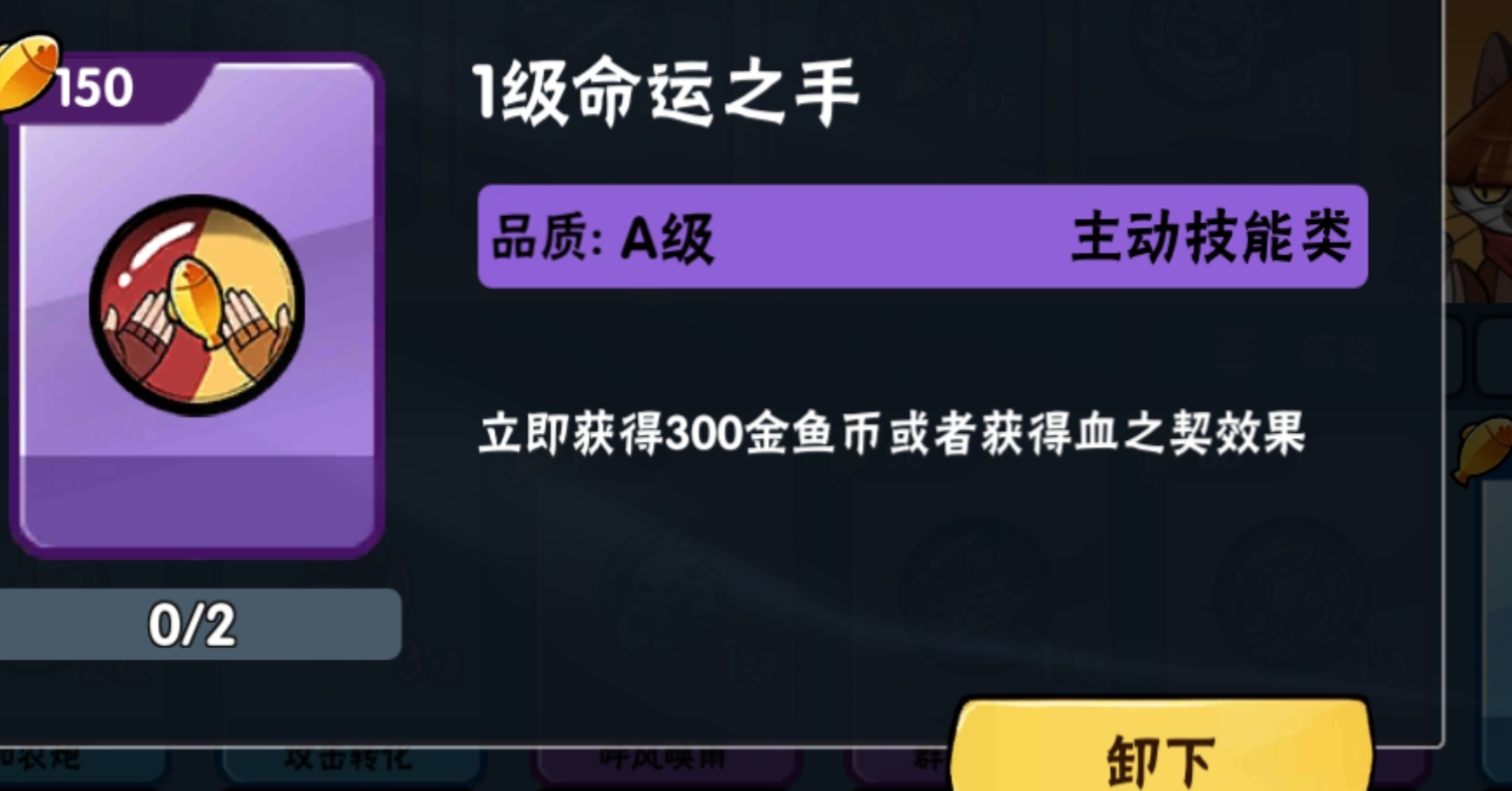 命运之手是一张紫色牌,它的效果是购买后可以主动使用,使用后将会随机获得血之契或者300金鱼币 命运之手的话,我这边是当做一个全图通用的牌,在低端局比较缺少金鱼币的时候特别需要,这边街上面说他要比赏金好的太多,首先,他可以攒着也就是说,他不怕行窃,而且就算他随即道血之契,那么效果也不会太差,毕竟都是等价,而300金鱼币带来的效果不一样他可以用来在第一张图购买更多的牌,并且售价比赏金便宜,所以他是一张完完全全可以代替赏金的牌了 普通地图推荐指数:7 7、攻击转换