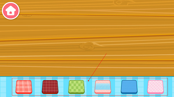 游戏一下开始,先会进入到生日派对的准备阶段,首先需要让宝宝选择一个自己喜欢的桌布。