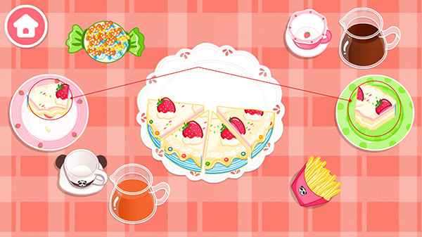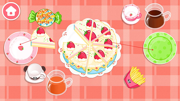 吹完蜡烛之后,就会自动切好蛋糕,让宝宝将切好的蛋糕放入餐盘内。