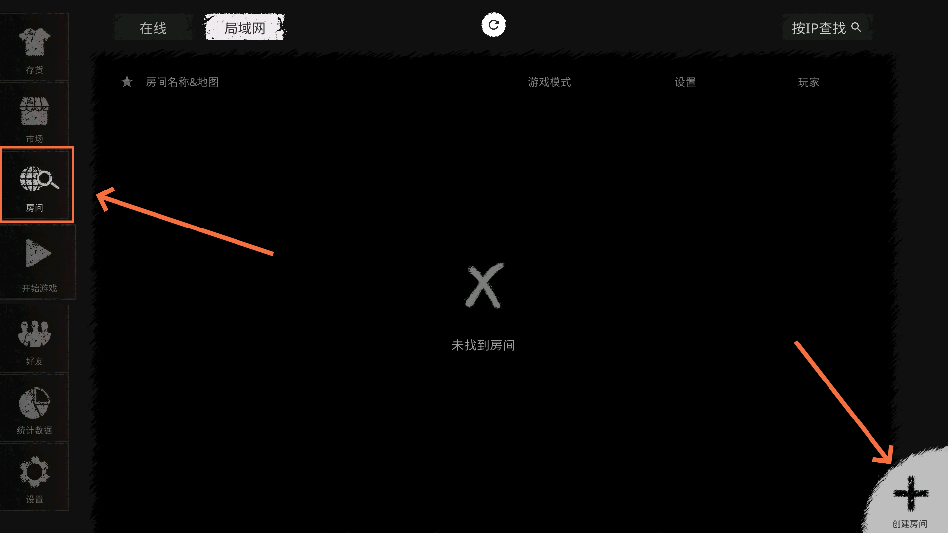 1、进入游戏后点击左边的【房间】,再点击右下角的【创建房间】。