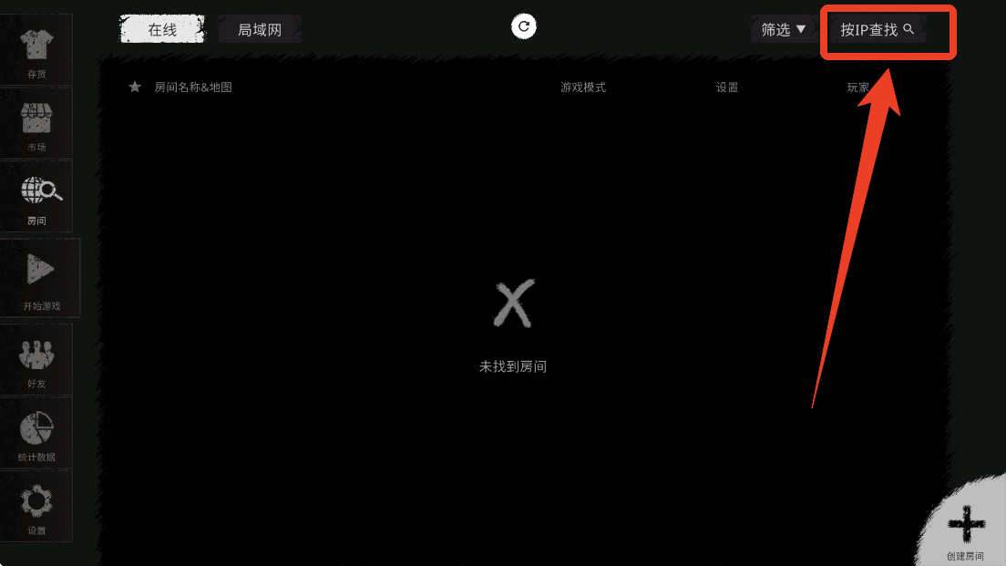6、好友就可以在【房间】页面点击右上角的【按IP查找】。