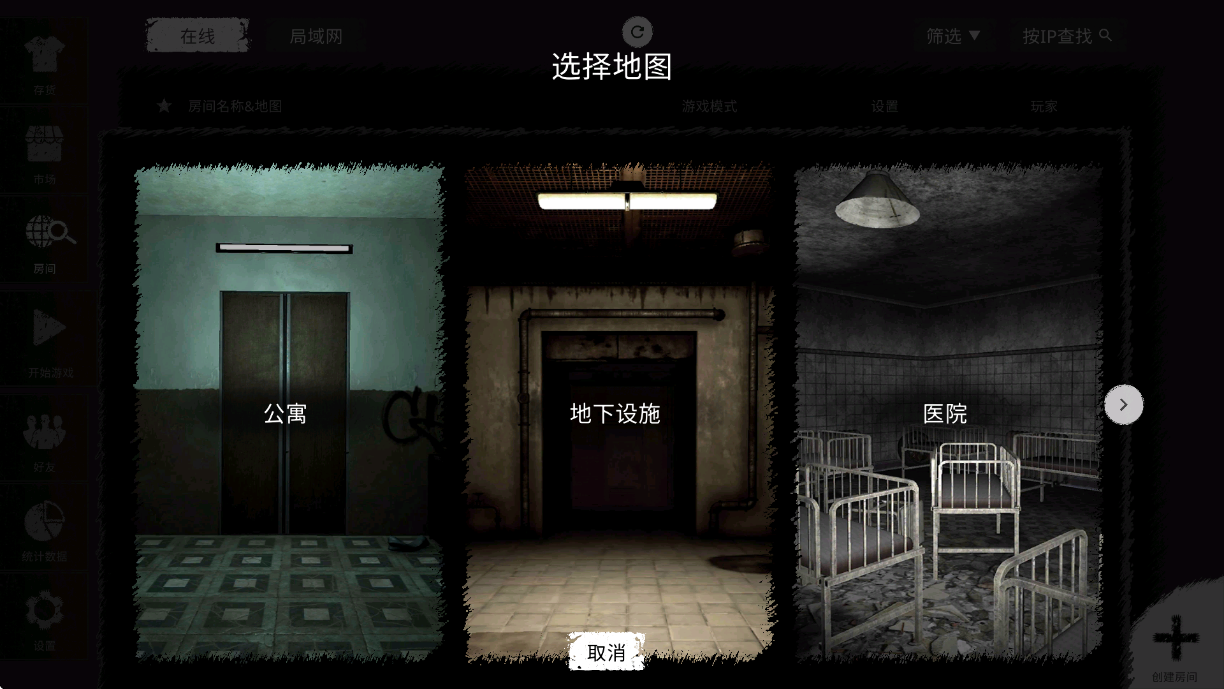 2、选择一张你想玩地图,一共有五种地图可以选择,这里以公寓为例。
