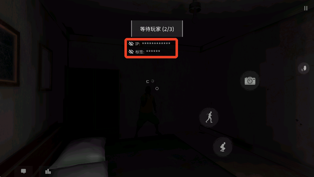 4、进入游戏后屏幕会出现IP和标签,点击前面的小眼睛可以查看。