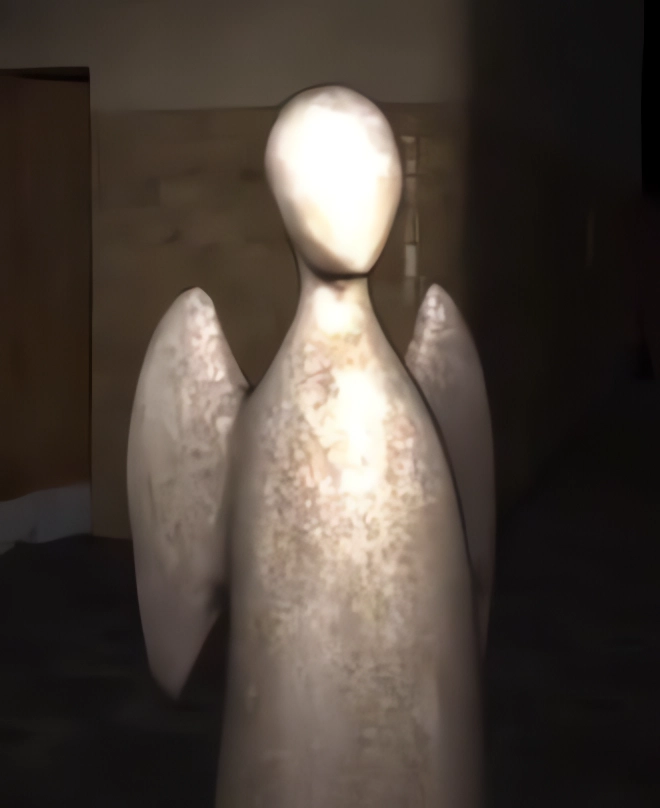 9、在搜索的过程中需要注意的是,鬼出来前有90%的几率会有音效。除音效外,还会强制关灯。下图这个有翅膀的石像就是学校地图的鬼。