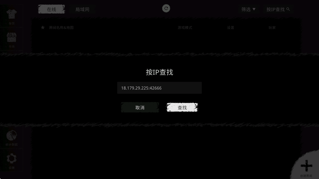 7、输入IP数字之后点击【查找】就能进入房间,然后一起玩啦!