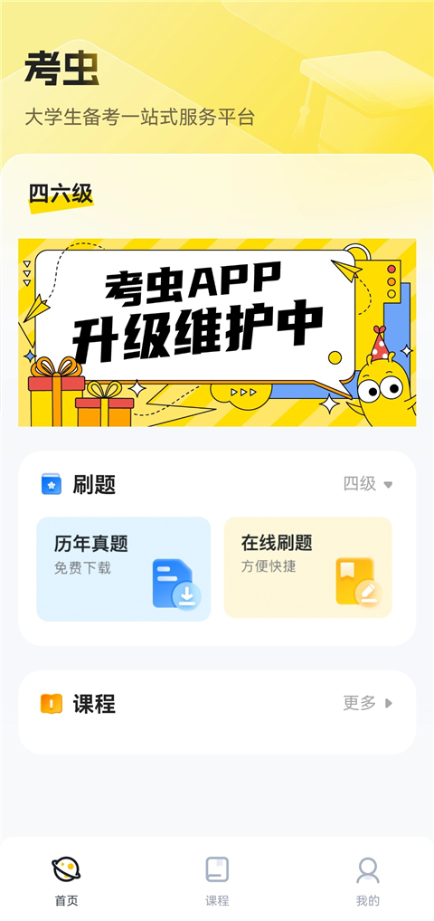 1、考前一个月倒计时!突击四六级,就来考虫学习! 2、修复了无网络查看下载课程等一些已知问题~ 如有建议请在我-意见反馈中联系我们,感谢你的建议让考虫做的更好~