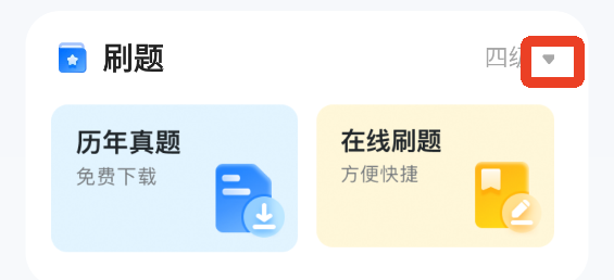 4、在【首页】点击这个倒三角可以切换四级和六级的题目。