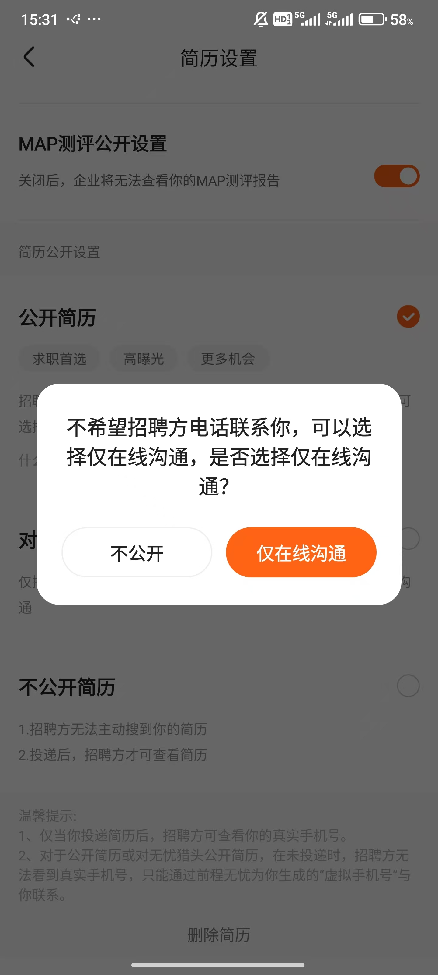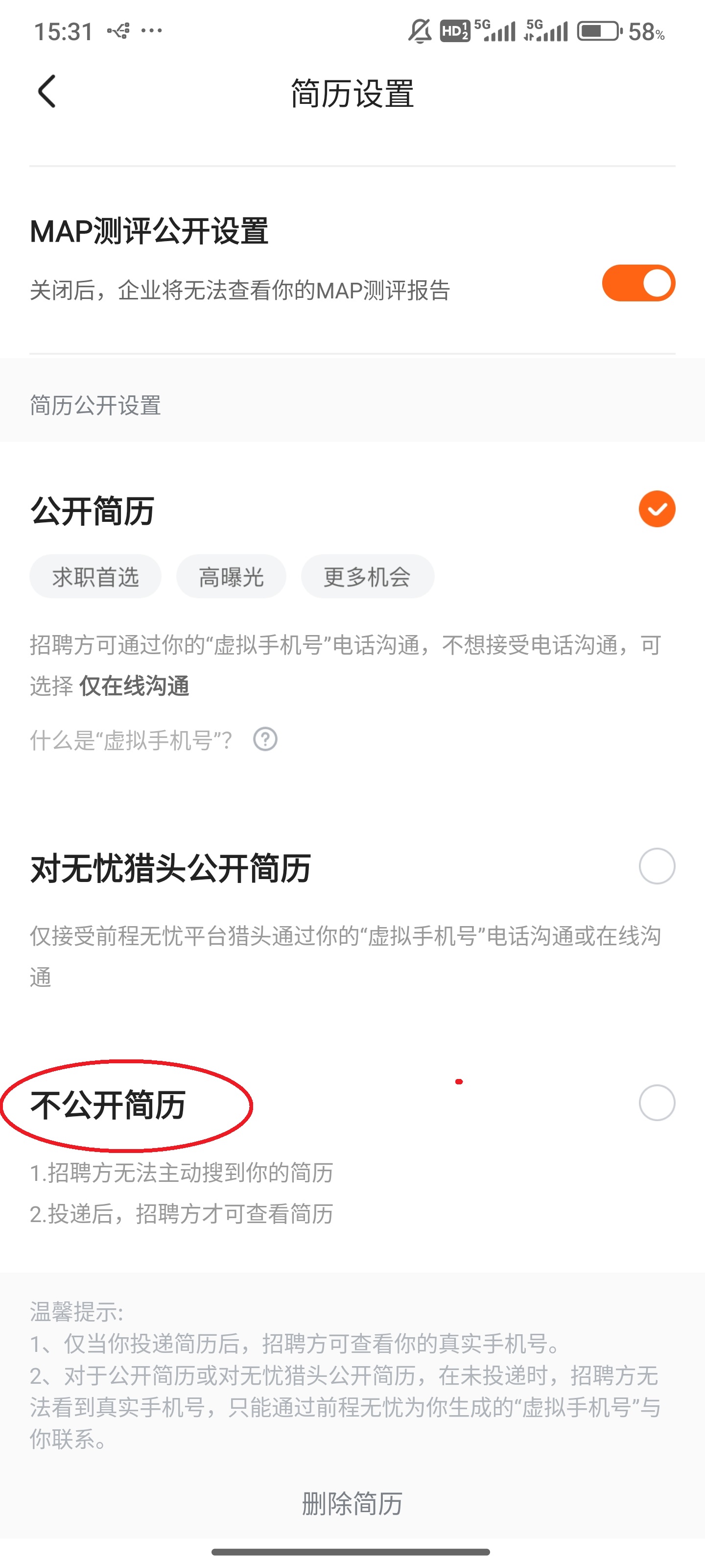 前途无忧app怎么隐藏简历