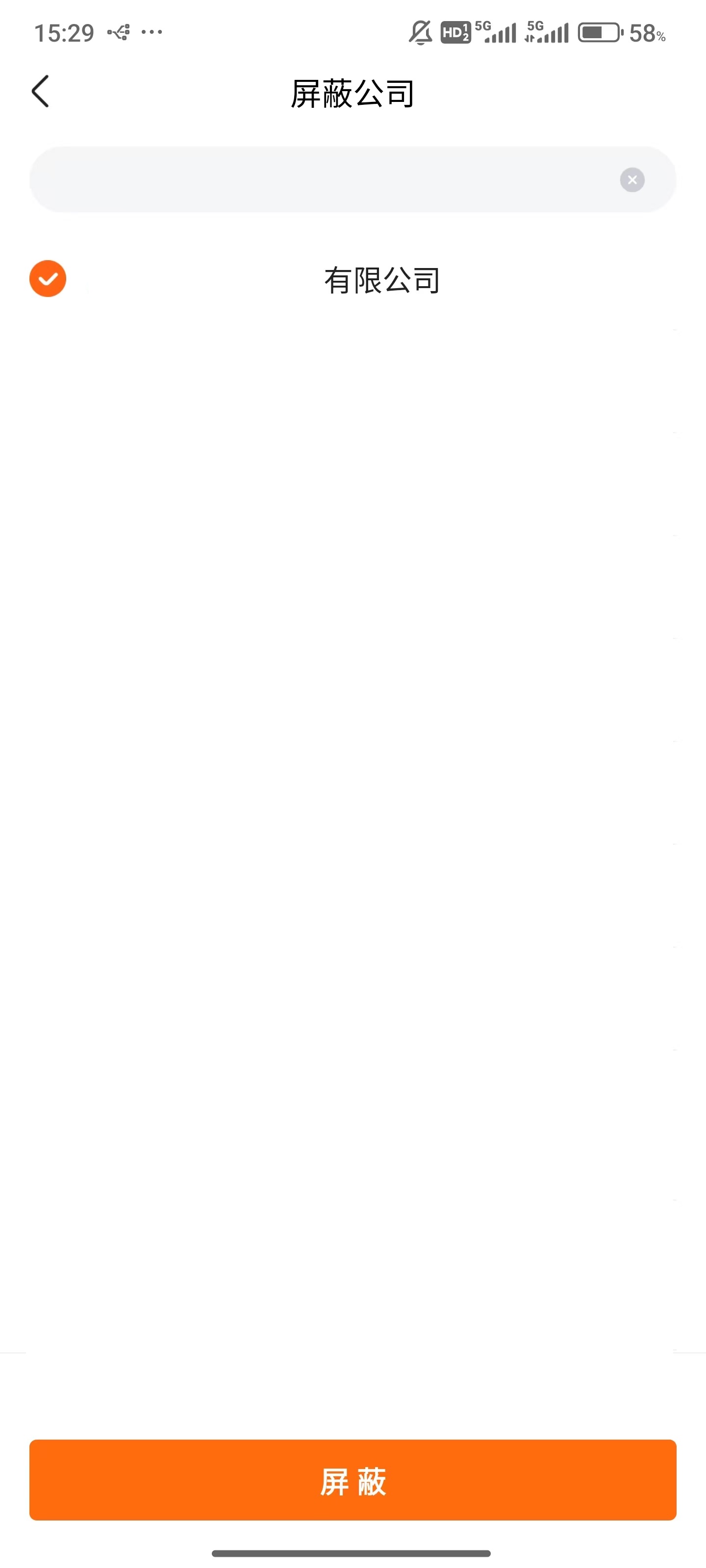 5、随后选择屏蔽的公司,点击屏幕下方的“屏蔽”。