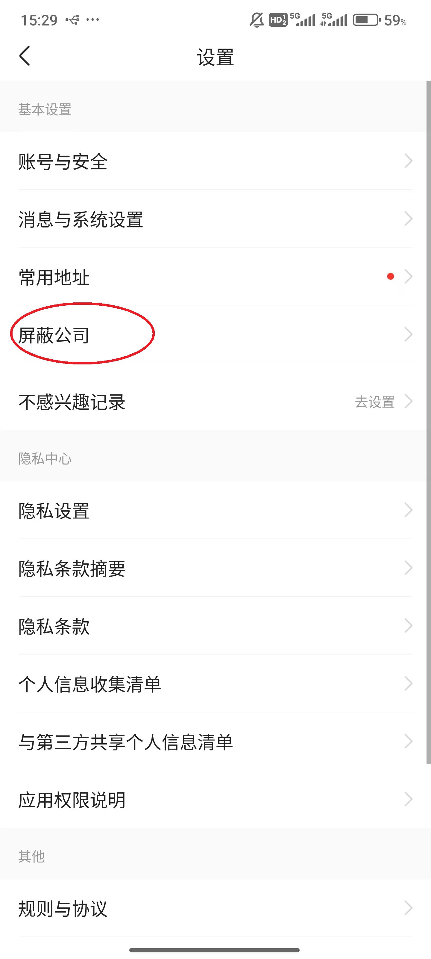 3、直接点击“屏蔽公司”。
