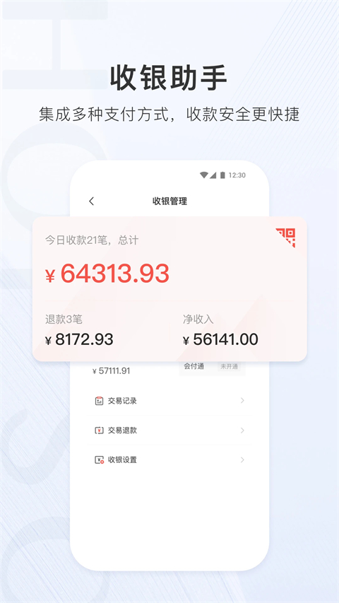 1、场内活动:场内活动快速获取。 2、数据统计:销售数据一目了然。 3、账单查看:账单状态实时查看。 4、业绩上报:每日销售随时上报。更新日志
