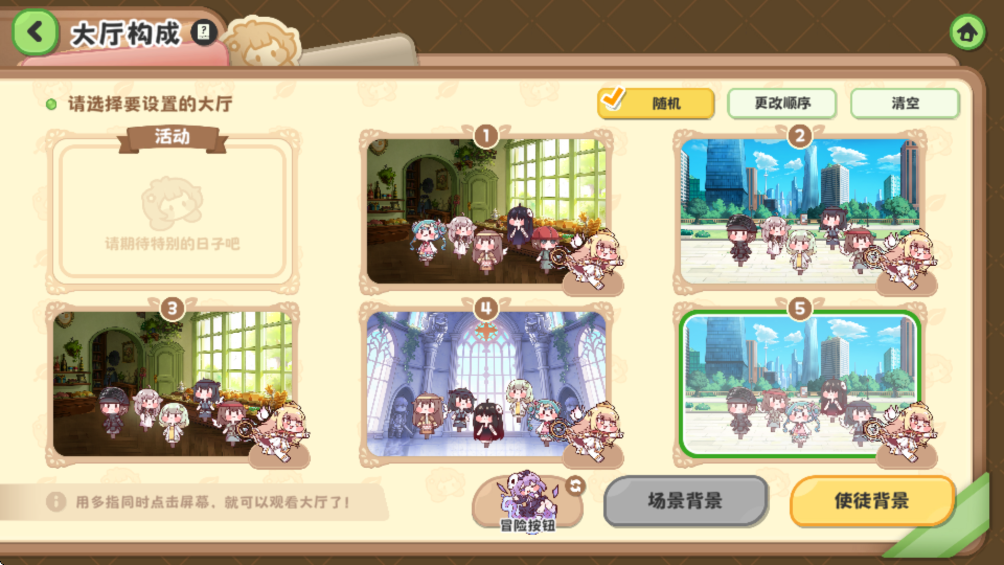 3、选择其中一个大厅,然后点击右下方的【使徒背景】。