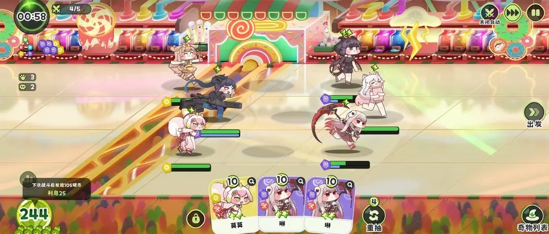 3)核心机制:硬币与利息系统——在主线等多回合(通常为5回合)战斗中,剩余硬币能产生利息,这是实现越级挑战的经济基础。