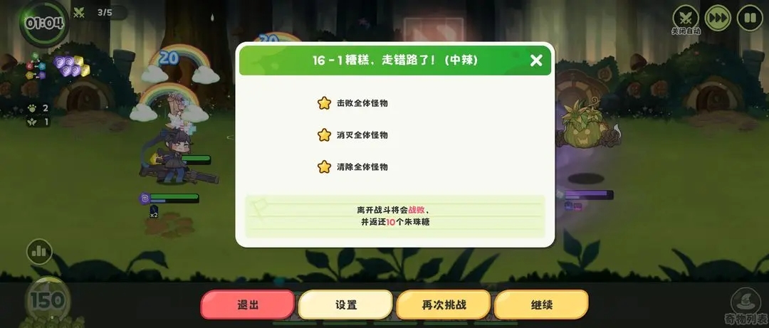 兜底重开:离开战斗判定战败,并返回10个珠珠糖。