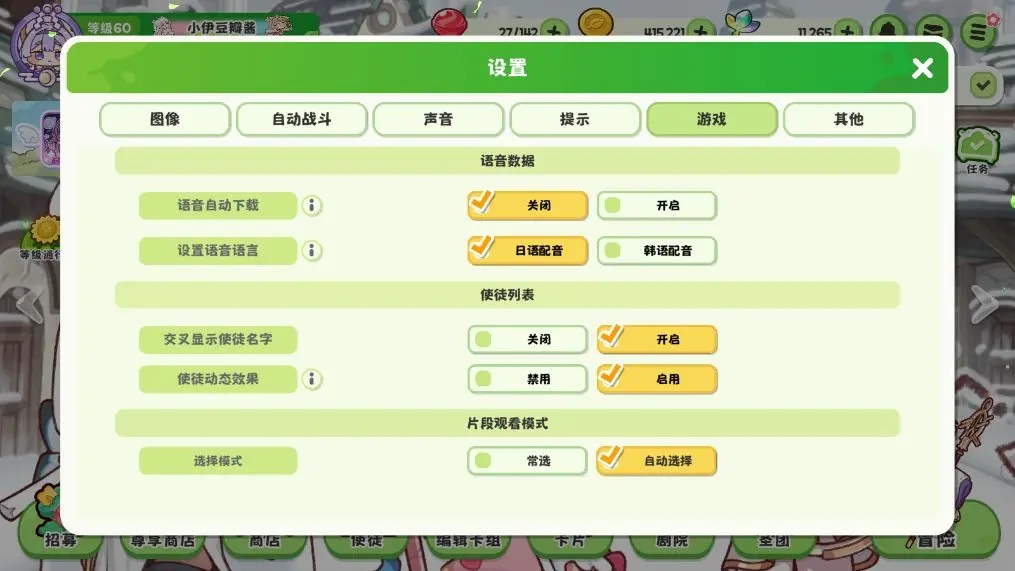 游戏-设置语音语言:日语配音、韩语配音切换(第一次切韩语配音,需下载语音包,重新进入游戏)